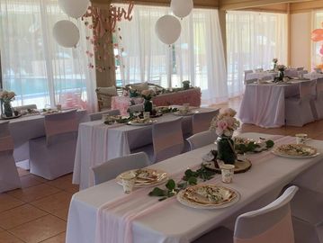 Tablecloth chair covers center pieces dishes Table runners Chair sashes Backdrops Decorations for your next event